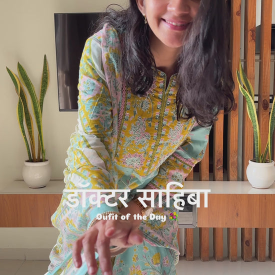 Ayana Aqua Blue Cotton Anarkali Suit Set For Women